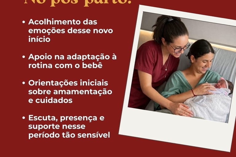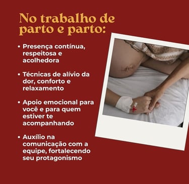 Com toques que aliviam, palavras que confortam e atitudes que fortalecem, ajudamos a criar o ambiente mais seguro e respeitoso possível para o nascimento.
